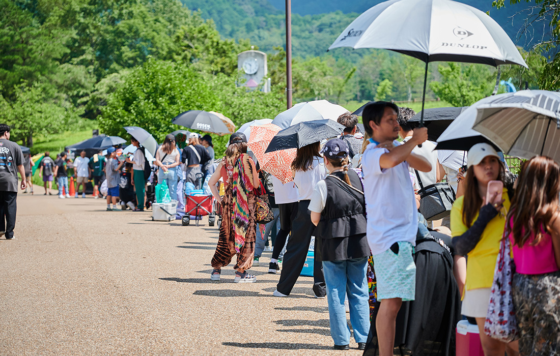 朝から気温がぐんぐん上がり、猛暑となる一日に。そんな中でも、開始と同時に多くの来場者が会場を訪れ、芝生エリアやフードブース、ステージ前は大賑わい!