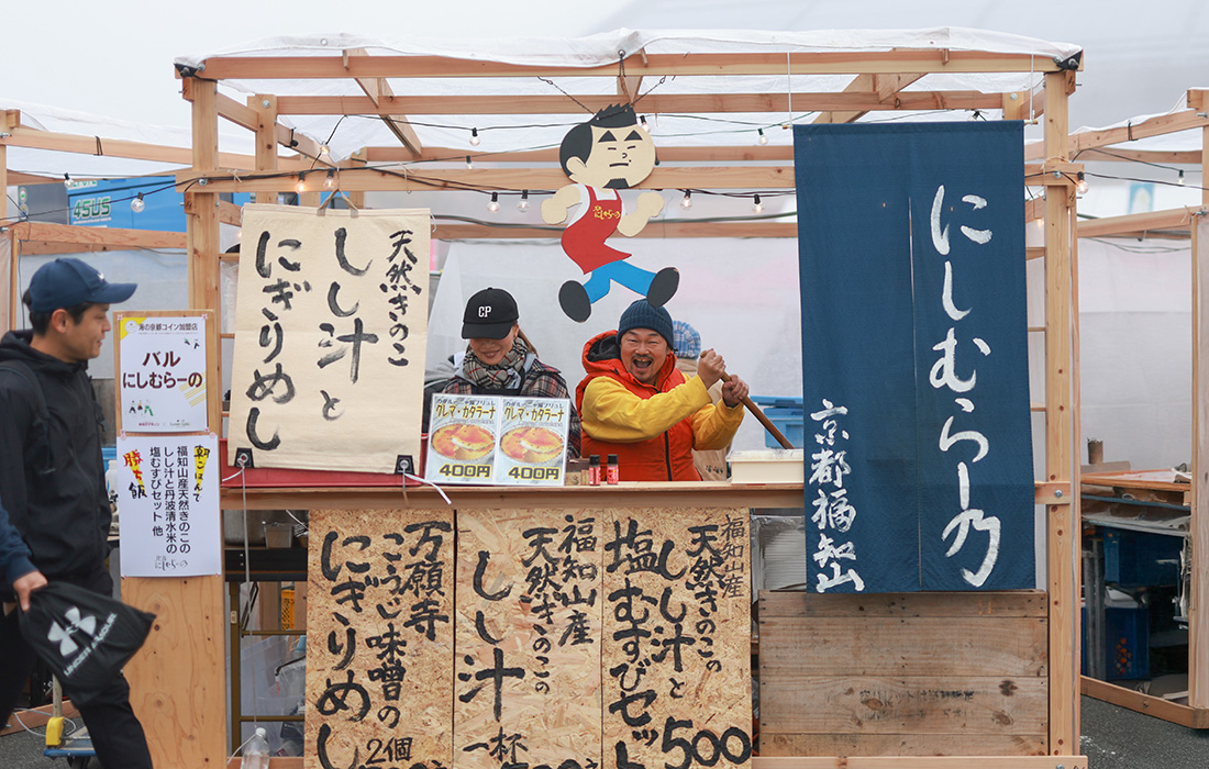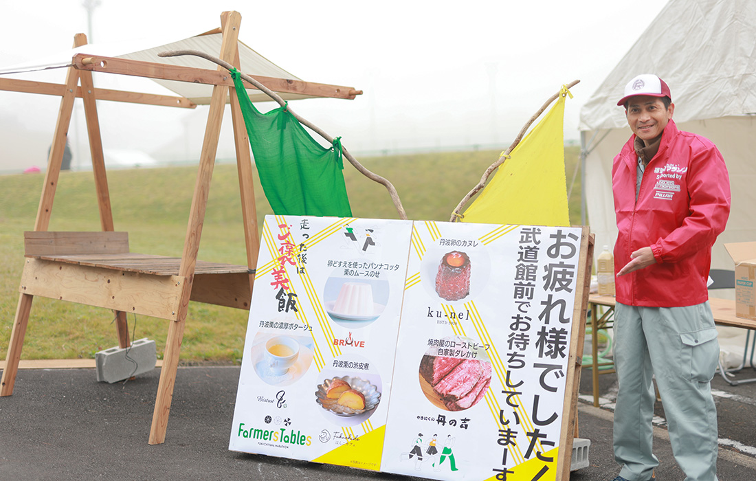 第33回福知山マラソンの会場となる三段池公園・武道館前には、限定14店舗が出店。